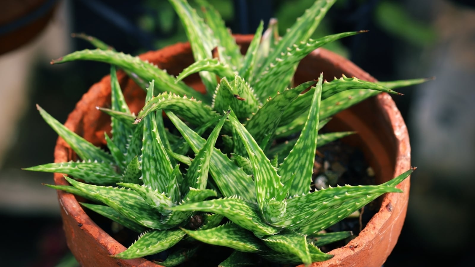 Like any good succulent, aloe vera stores water in its leaves. Because of this supply, it doesn’t need frequent watering. In fact, too much water quickly leads to root rot and is the quickest way to kill a succulent. To further prevent this, plant indoor aloes in a terra cotta pot, which releases excess moisture easily.