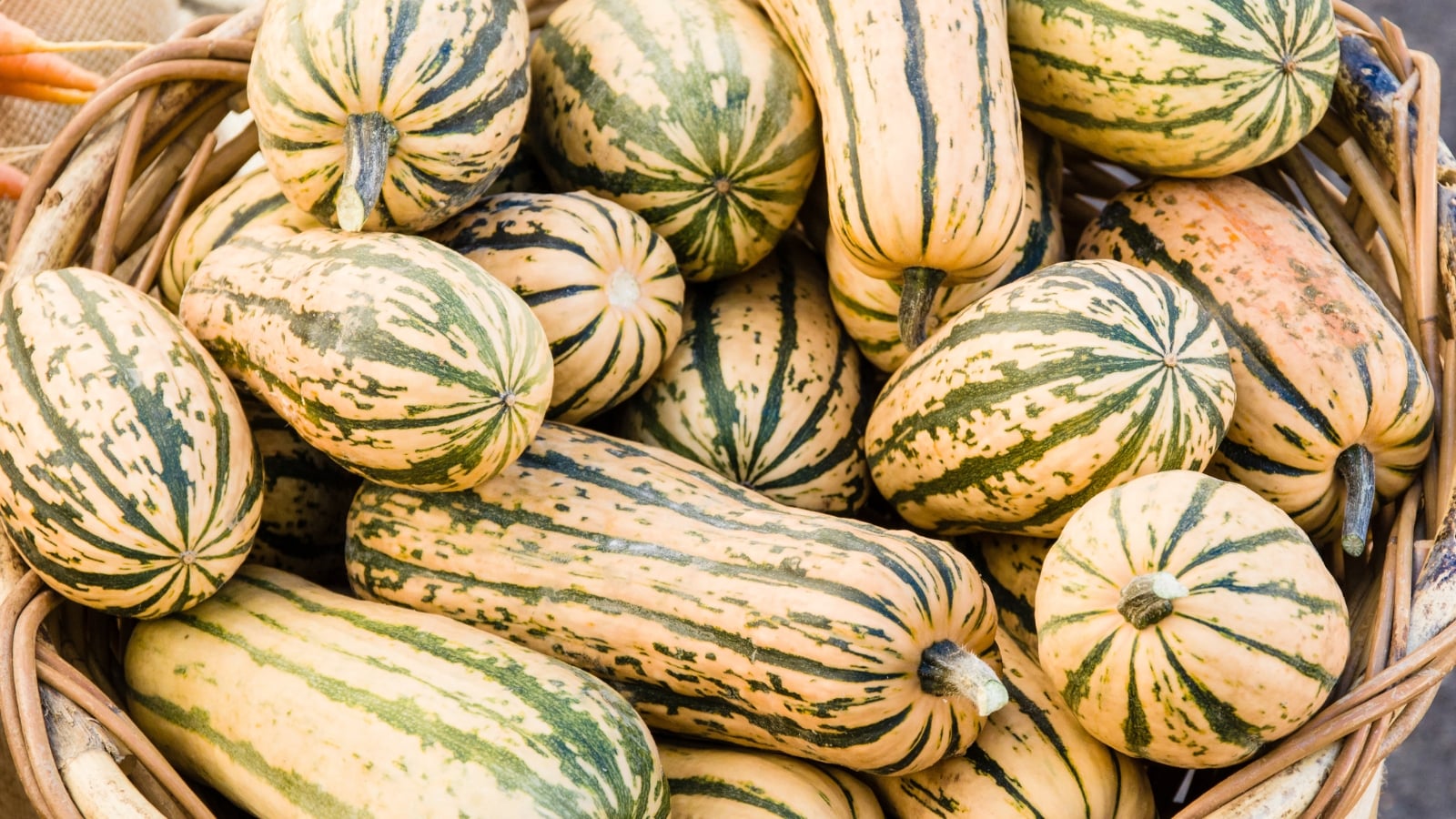 Delicata squash is high in Vitamins A and C, folate, calcium, and potassium. They are a nutritional powerhouse, and the flavor is well-balanced with smooth, tender flesh.