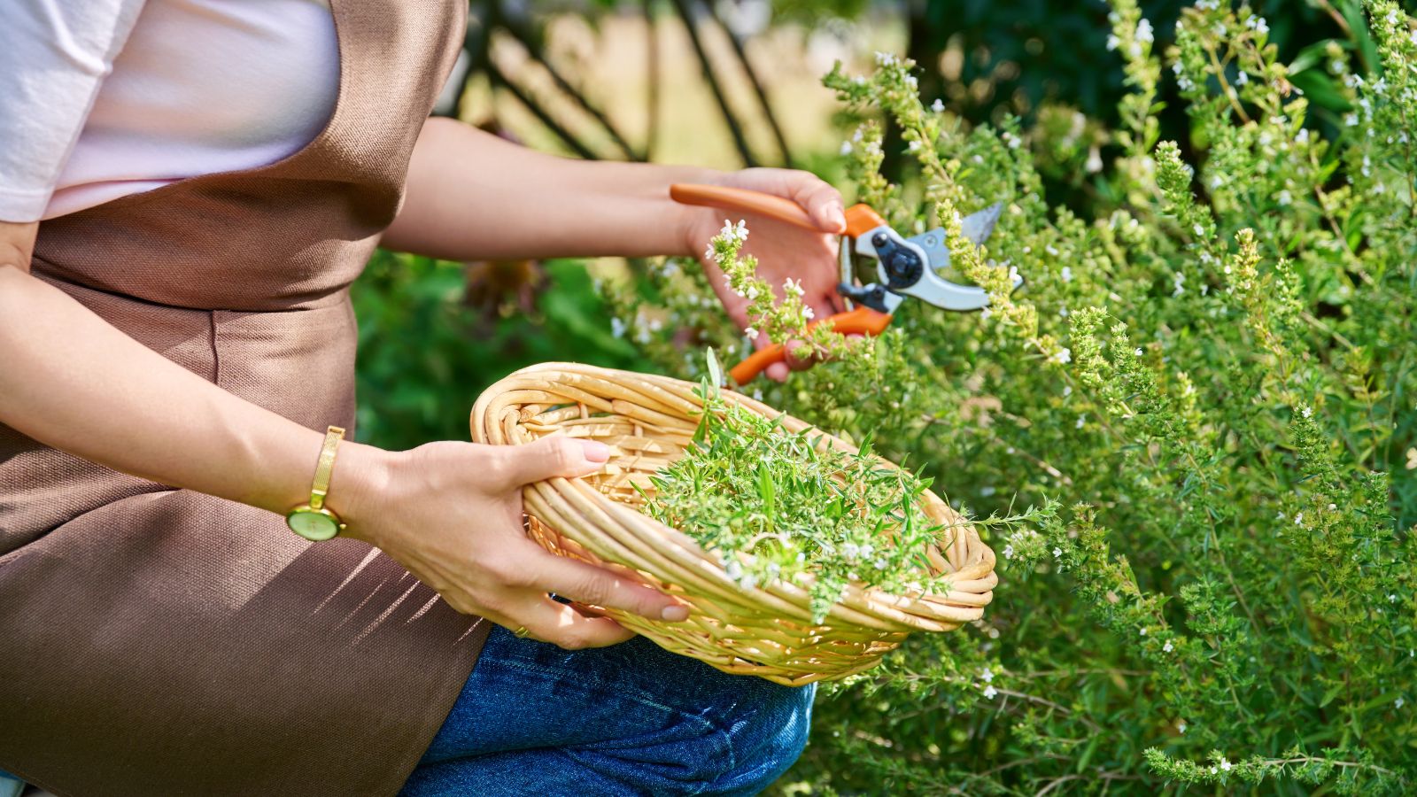You will need sterilized pruners or garden shears when you are ready to harvest thyme. Harvesting creates an open wound on the plant, so clean tools help keep it healthy. Pinching or tearing off leaves and stems can cause unnecessary damage and create weak points where disease or pests may enter.