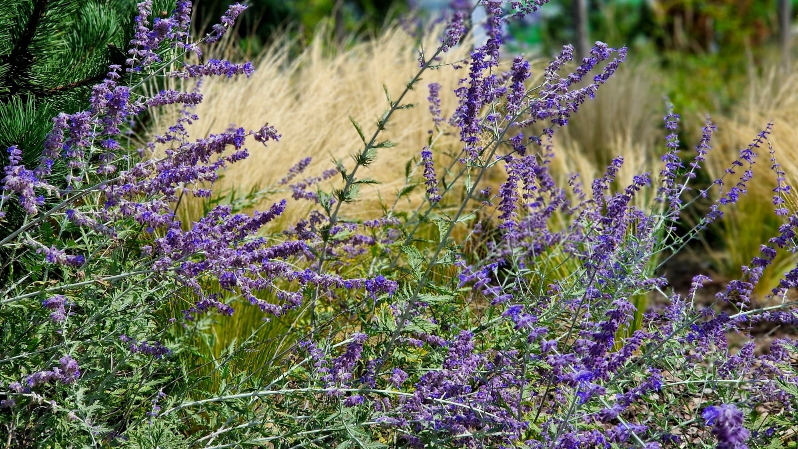 Russian sage is a woody perennial shrub that looks fantastic in a sunny landscape with well-drained soil. Russian sage is native to southern and central Asia and is winter hardy in moderate to warm climates. It can grow up to four feet tall in ideal conditions and forms an attractively rounded clump so be sure to give it plenty of space.