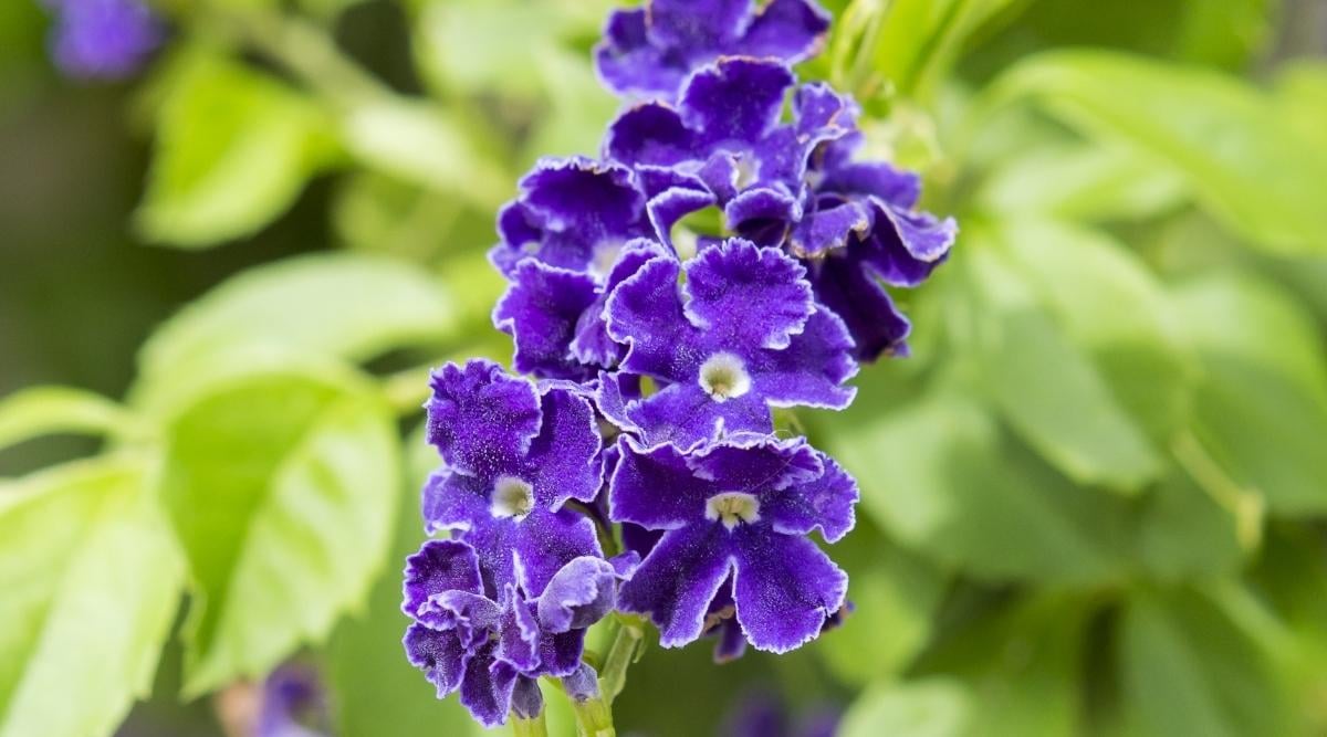 Browallia is also known as bush violet, and it’s often grown as a warm-weather annual. In colder climates, it’s grown as an annual. They are woody-stemmed members of the nightshade family. Their flowers are tubular, with five distinct lobes of purple flowers. Sometimes, the flowers tend closer to blue hues, but a white center and purplish flowers are most typical.